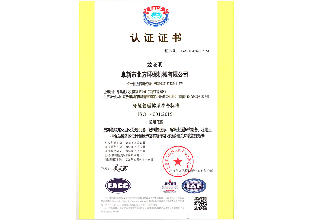 環(huán)境管理體系認證書